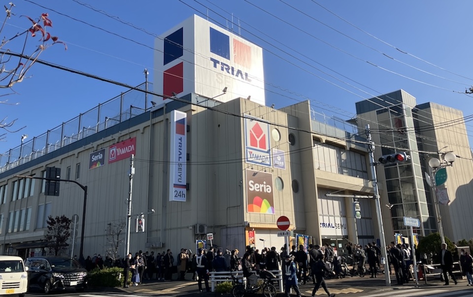 福岡市に本社を置くトライアルはITを駆使した生産・物流で低価格を実現し、今年7月に西友を傘下に収めて全国に350以上の店舗を展開している。西友花小金井店は1976年に開店し、売場は1階から3階。10月26日にいったん閉店し、11月28日の「グランドオープン」に向けて24日から27日までは「プレオープン」として午前10時から午後7時まで“試験営業”していた。