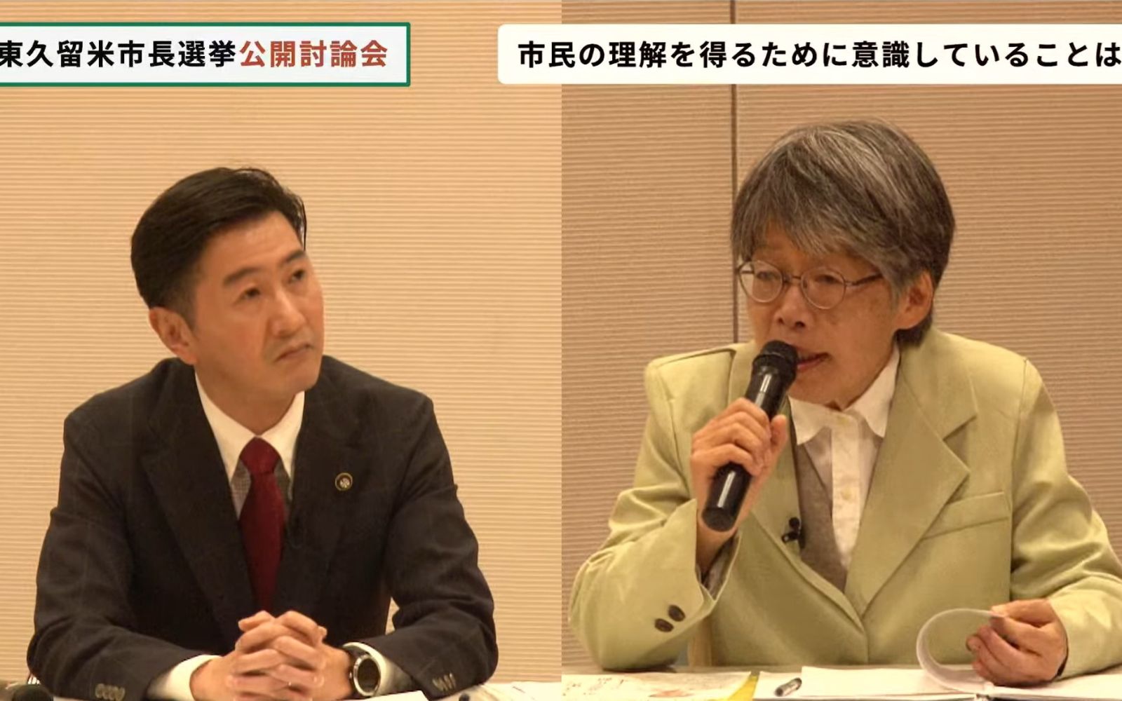 12月14日に投開票日を迎える東久留米市長選挙の立候補予定者公開討論会が11月30日、同市内の成美教育文化会館で行われた。主催は東久留米青年会議所と地元ラジオ局のTOKYO854くるめラ。若者の政治的関心を高める目的で、市内にある自由学園の高校生が進行役を務めた。