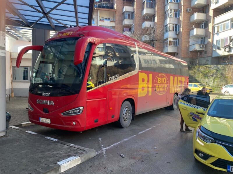28日午前10時50分に発車したバス(3236円)はほぼ満席。冠雪のバルカン山脈を左手にひた走り、午後2時ソフィアに着いた。大使館に行くのは初めてで、場所はサイトで調べておいた。