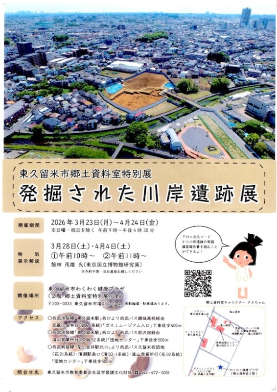 なお、「東久留米市郷土資料室特別展 発掘された川岸遺跡展」が2026年3月22日(月)~4月24日(金)、東久留米わくわく健康プラザで開催される。