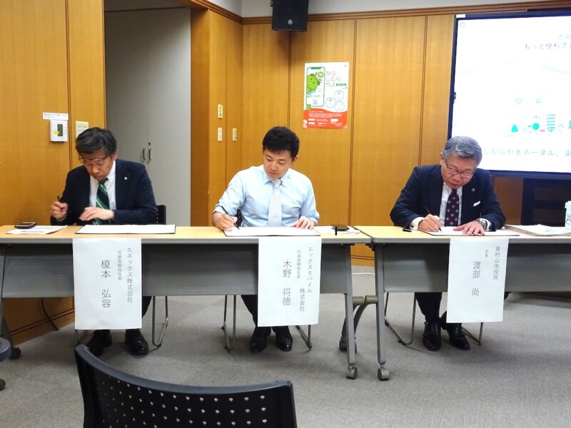 協定を結んだのは東村山市とエックスモバイル、エネックスの3者。「たのしむらやまモバイル」と名付け、東村山市のデジタル地域ポイント「アインPay」やオンラインのデジタル行政サービス「たのしむらやまポータル」を実装して利用、普及を促す。
