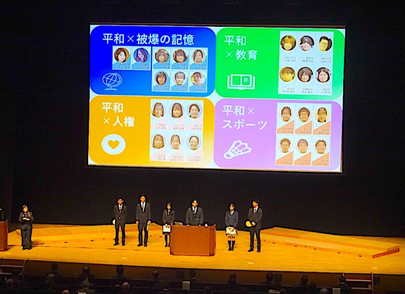 「平和ユース」の活動報告では「被爆の記憶」「教育」「人権」「スポーツ」という4つのテーマを切り口に広島で聴いた被爆者の体験談を踏まえつつ平和の意味を深堀りした。その中には朝鮮半島出身者の強制連行や毒物兵器の人体実験など日本による戦争加害の側面にも光を当てて「学校教育で学ぶ機会が不十分な加害の側面も私たち若い世代が主体となって発信し続けることが必要だ」との報告もあった。トークセッションでは平和ユースの報告を受けてメンバーと各市長との間でやりとりが交わされ、若者からは「幅広い世代で共に考える場を作ってほしい」などとの要望が出た。