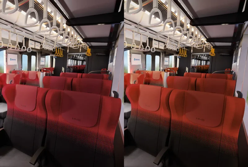 愛称の「トキイロ」は「時の色」をイメージし、車両前面は朝焼けと夕焼けを、側面は朝、昼、夕それぞれの空の色を表現した。座席は車体デザインに合わせた赤とオレンジでリクライニング機能がある。トイレを設置する一方、つり革もあるなど観光と通勤両用に備えた。軽量アルミ車体を採用し10000系に比べ消費電力量を70%削減した。