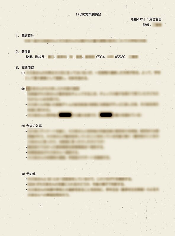 小平市の公文書開示請求で開示された学校の「いじめ対策委員会」に関する同一の文書が書式や不開示部分などに関して異なる形で公開されていたことが、2月27日に開かれた小平市議会の一般質問で明らかになった。小平市教育委員会は「文書管理のずさんさが招いた事態」と説明した。