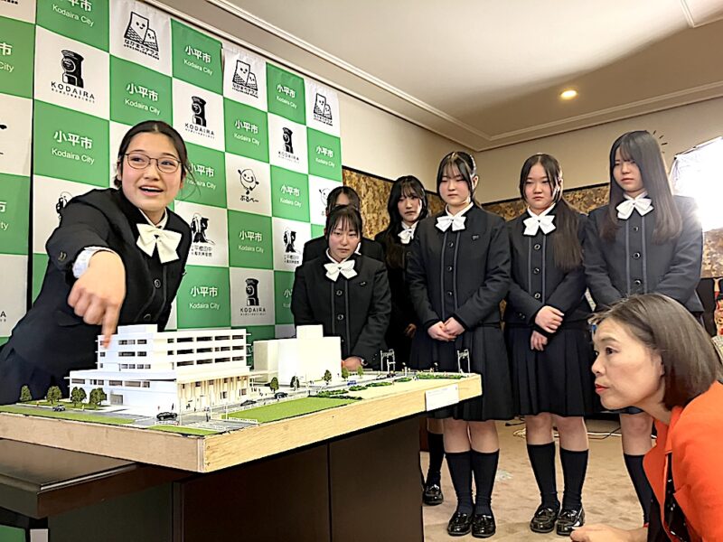 生徒から模型作品の説明を受けた小林洋子市長は「いろいろ苦労しながら取り組んでくれたと思う。これを機にさらに小平市を好きになってほしい」と語った。