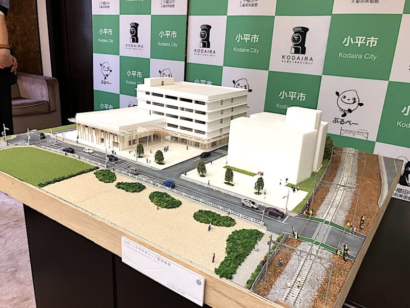 小平市は老朽化した中央公民館、健康福祉事務センター、福祉会館の3施設を複合化して建て替え、市民の交流拠点とする中央エリア整備事業を進めている。整備完了は2031年度以降を予定しており、今回、その完成イメージのジオラマ制作を同校の鉄道模型デザイン班に依頼した。