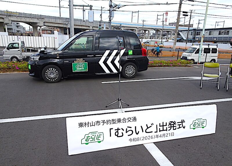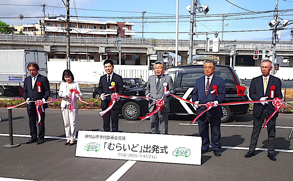 東村山市はタクシーを活用した予約型乗合交通実験運行の再チャレンジとしての「むらいど」を4月21日開始した。鉄道の駅やバス停留所から離れた地域に住み、自家用車などの移動手段を持たない高齢者、障害者、幼い子ども連れなどの「交通弱者」に向けた公共交通サービスで、2025年約半年間にわたって実施したものの結果が振るわなかった実験を見直して改善を加えた。